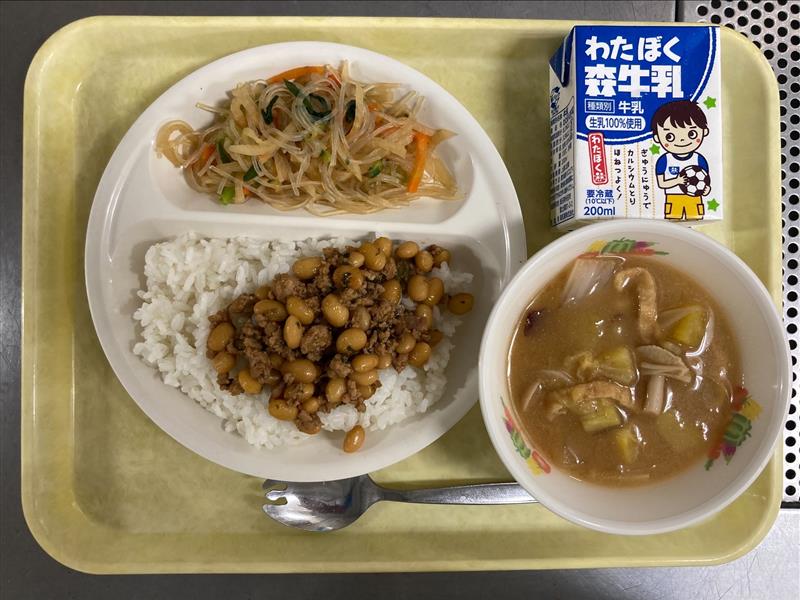 ・さつまいもの味噌汁 ・春雨サラダ ・牛乳 |