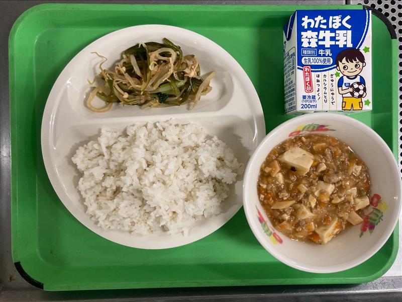 ・麻婆豆腐 ・茎わかめのナムル ・牛乳
