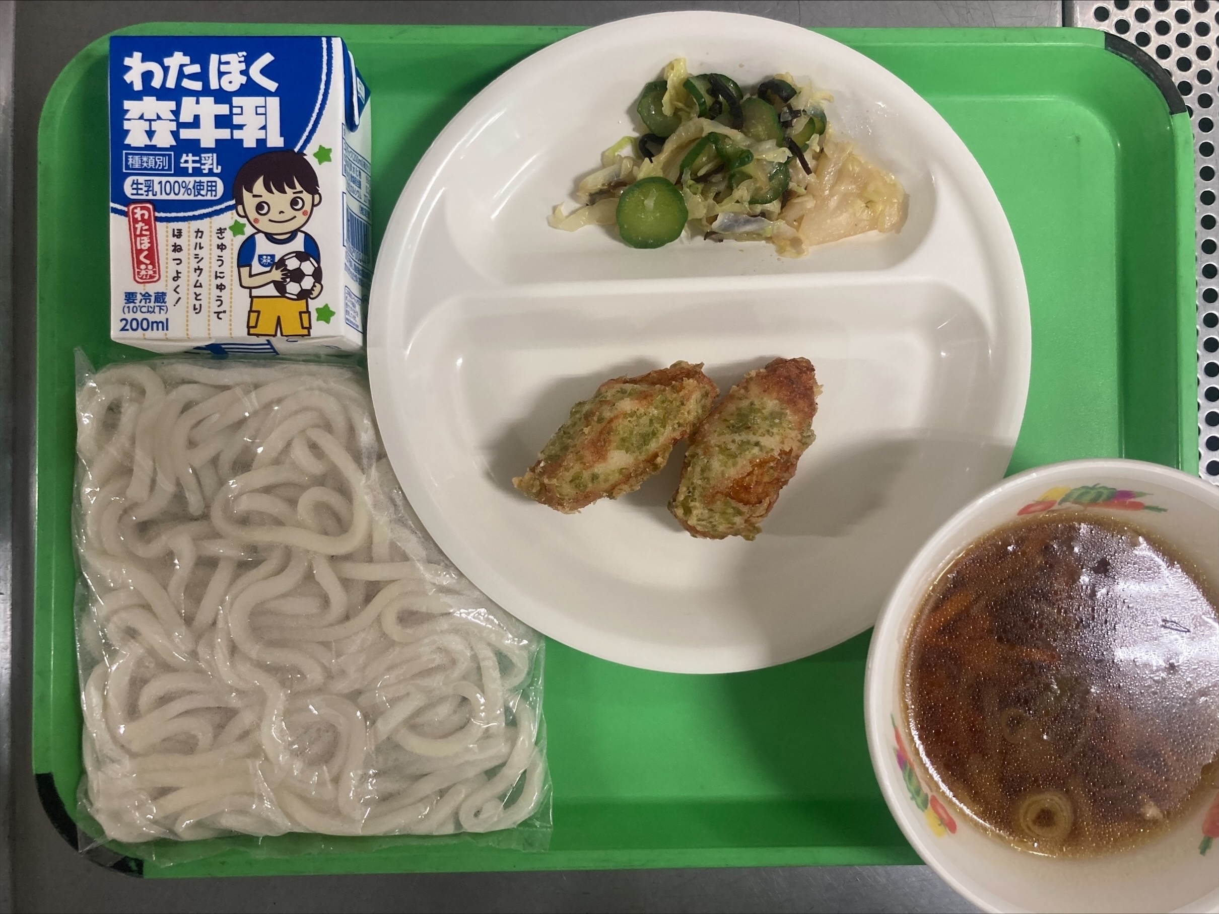 ・笹かまぼこの磯辺揚げ ・塩こんぶ和え ・牛乳 |