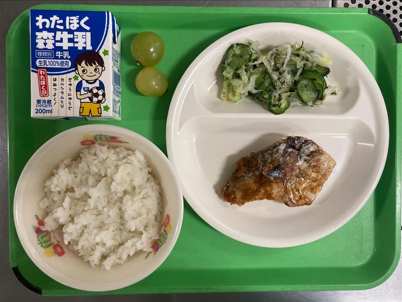 ・ごはん ・さばの薬味ソースがけ ・旨塩キャベツ ・牛乳 |