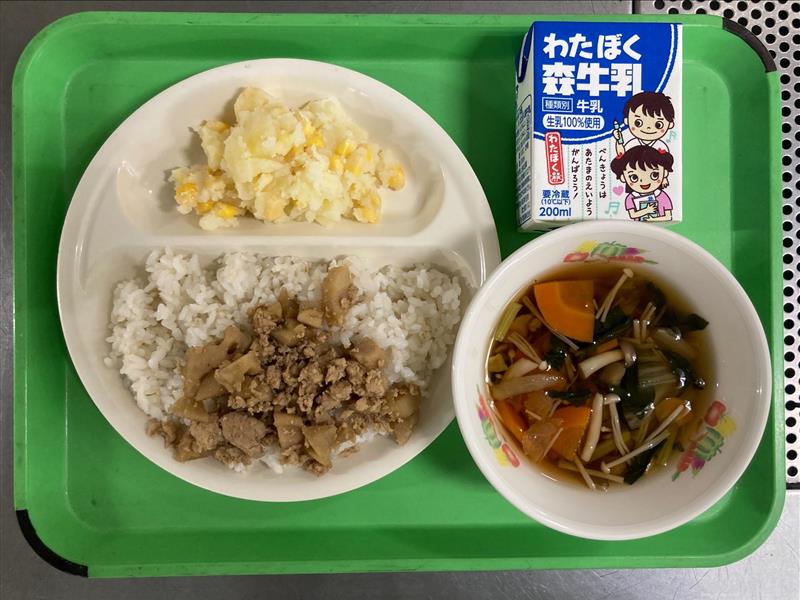 ・コーンポテト ・きのこ汁 ・牛乳 |