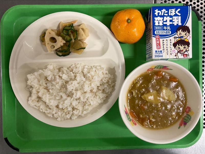 🍊旬の食材「みかん」🍊 ・里芋カレーライス ・手作り福神漬け ・みかん |