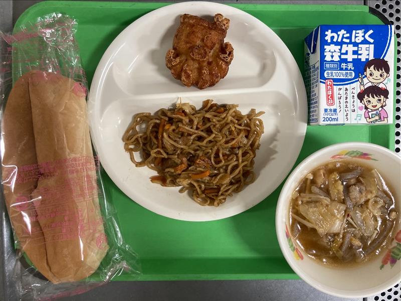 ・焼きそばパン ・揚げたこ焼き ・キムチスープ ・牛乳 |