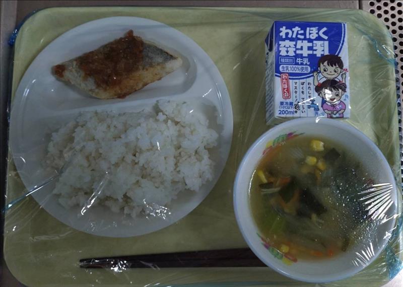 ・味のり ・いかのかりん揚げ ・かきたま汁 ・牛乳 |