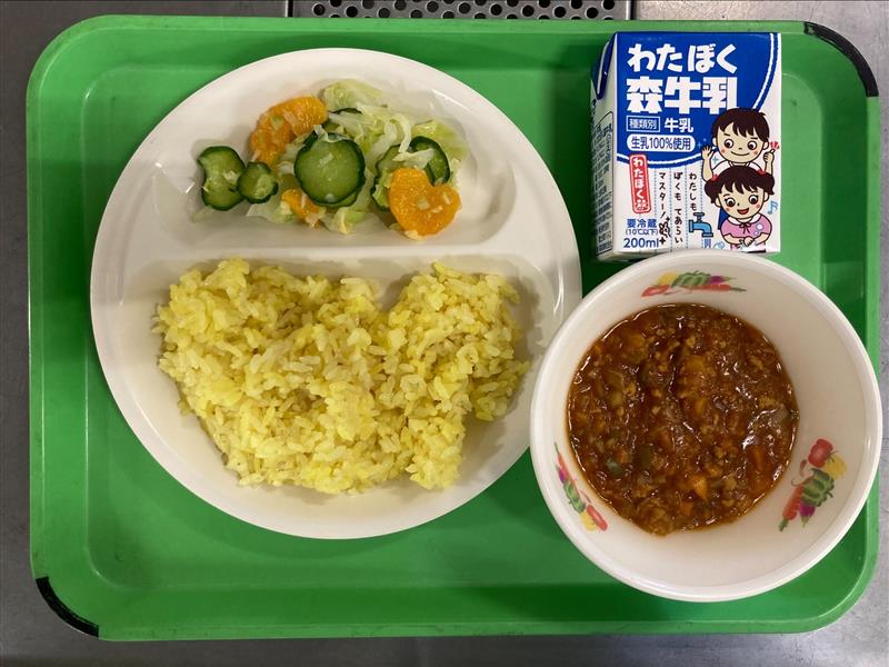 ターメリックライス ・フレンチサラダ ・牛乳 |
