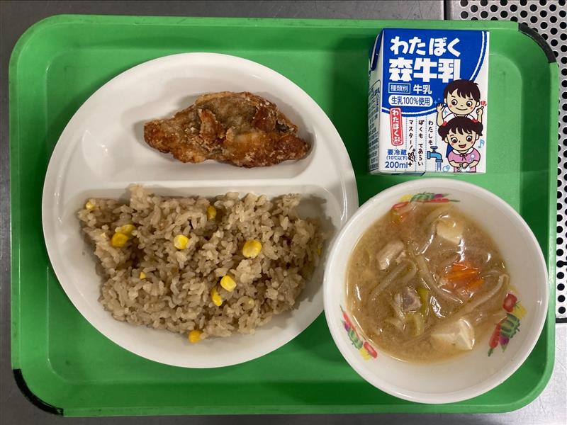 ・とうもろこしご飯 ・たらの竜田揚げ ・道産子汁 ・牛乳 |